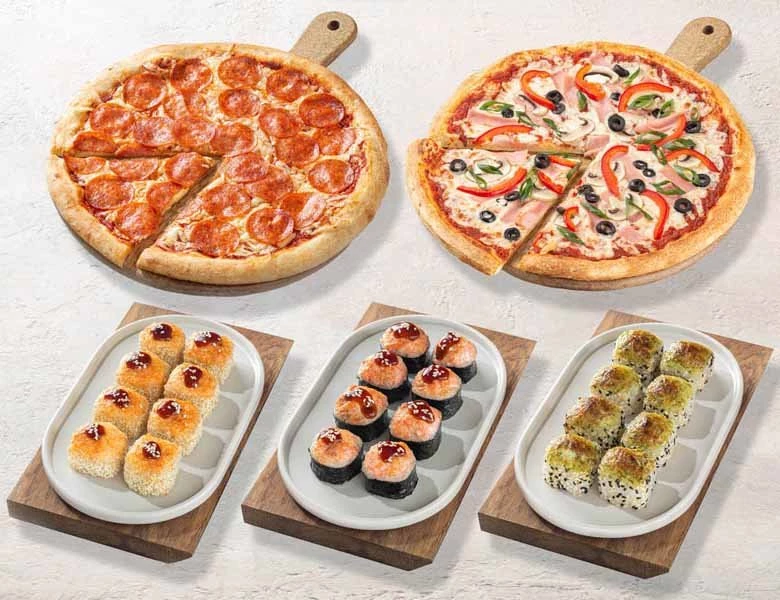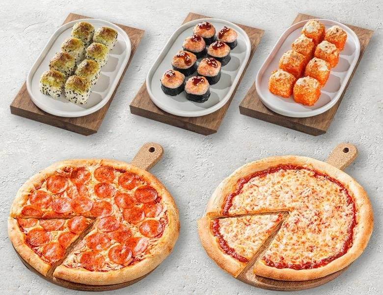 Суши не соответствуют картинке, один рис, рыбы местами не было вообще, раньше было более менее. Пицца нормальная, тесто в пицце понравилось, начинки маловато.